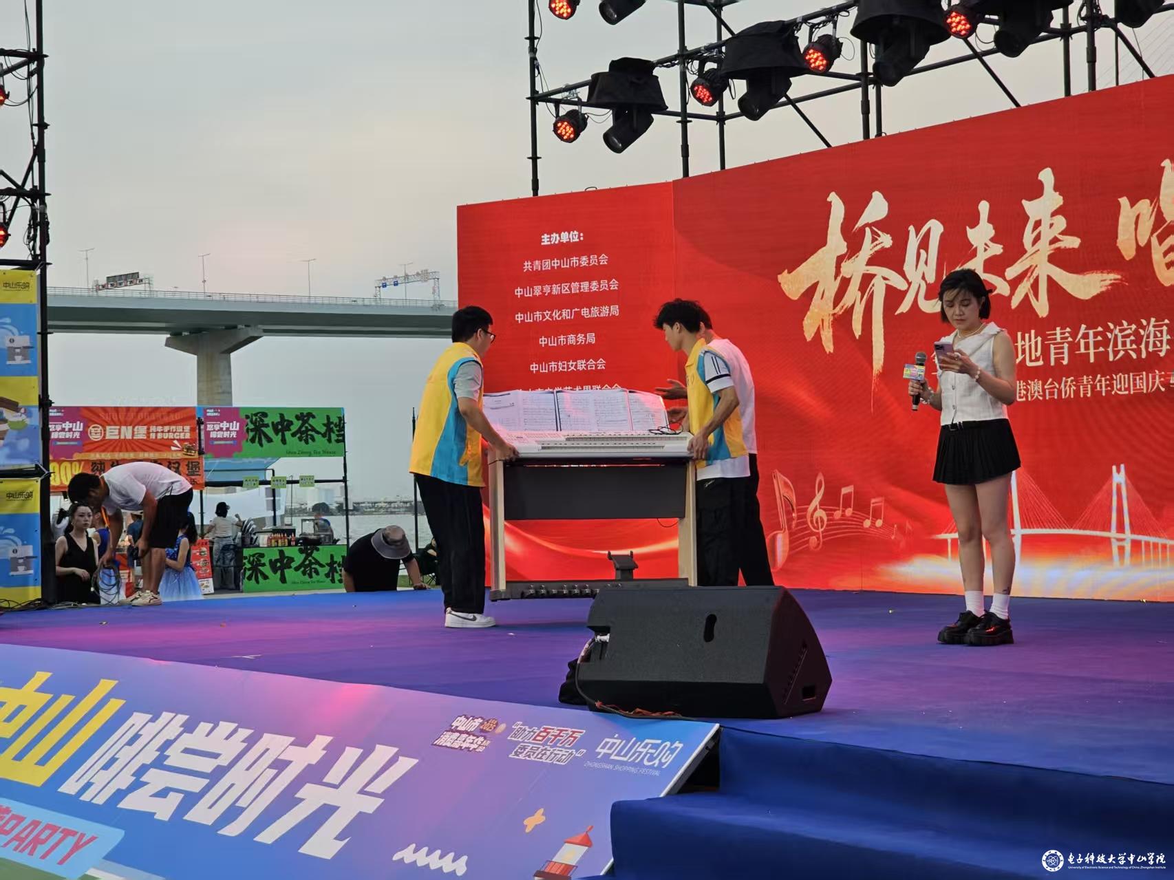 在9月30日举办的翠亨新区马鞍岛“桥见未来,唱响湾区”2025年金色大地青年滨海音乐会(粤港澳台侨青年迎国庆专场)上,舞台上旋律悠扬,台下我校志愿者的身影格外动人 —— 他们穿梭在观众间,细致引导入座、及时疏导人流,用训练有素的姿态维护着现场秩序;遇到初到中山的粤港澳台侨青年,他们自动送上温暖微笑,主动解疑答惑、亲切交流,为这场跨地域的青春盛会搭起“暖心桥梁”。“虽然一直站着几个小时有点儿累,但能及时帮助观众解决各种问题,愉悦地享受音乐会,我就会很有成就感。”来自机电工程学院24机械电子工程专业的梁爵熙同学说。