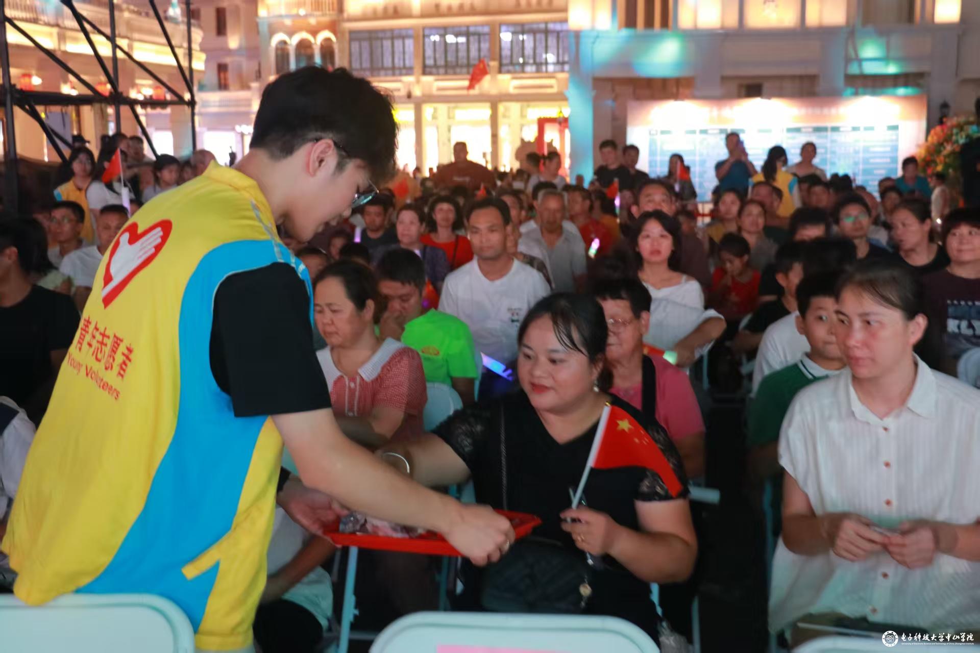 “演出入口在前方50米就到了!”“请大家不要拥挤,排队入场!”“给您发一下国旗,请拿好!”9月30日至10月6日,我校百余名学生志愿者忙碌地在孙文西步行街 “月上烟墩”音乐会现场维持秩序。这抹“志愿黄”,不仅让音乐会的举办更顺畅,更用青春活力为 “香山古城” 这张中山文化名片添上了生动又温暖的一笔。