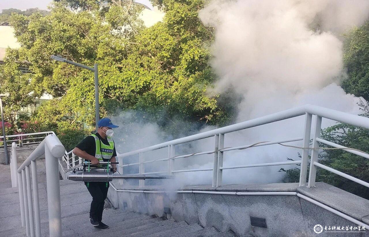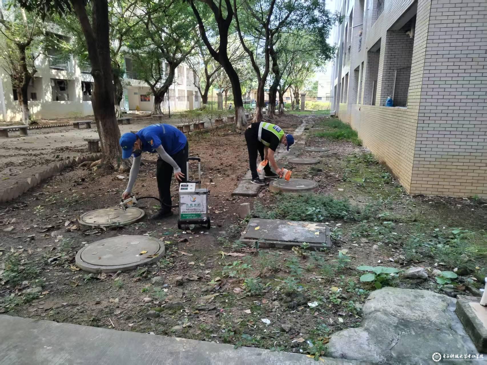 校园环境整治及蚊虫消杀工作由后勤管理处牵头组织实施。节前,工作人员除了对教学场所、宿舍、饭堂等常规部位进行全面检查外,还针对校园商铺商超等容易遗漏的场所开展了专项检查,加强对清积水、强灭蚊工作的督促督办,并组织专业消杀队伍开展了全校性消杀工作。放假以来,后勤工作人员放弃休假坚守岗位,开展了多次全校性覆盖室内外的蚊虫消杀及环境整治工作,持续对公共区域积水点进行查漏补缺;医务所门诊24小时值班,按要求落实师生健康监测,加强与卫健疾控部门的沟通协作,为师生提供了良好的医疗支持;及时采购防蚊灭蚊物资,保障防疫物资库存稳定。