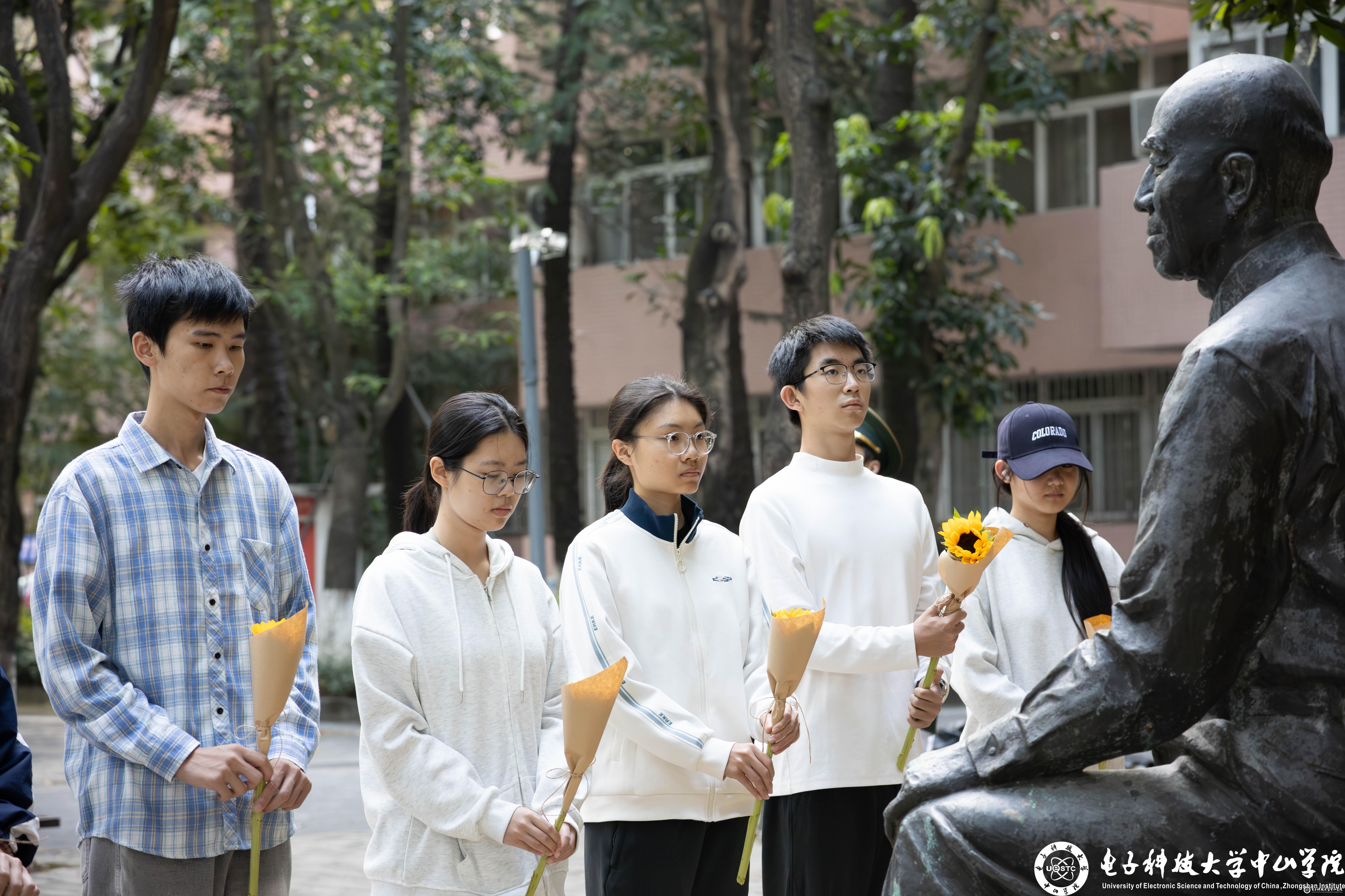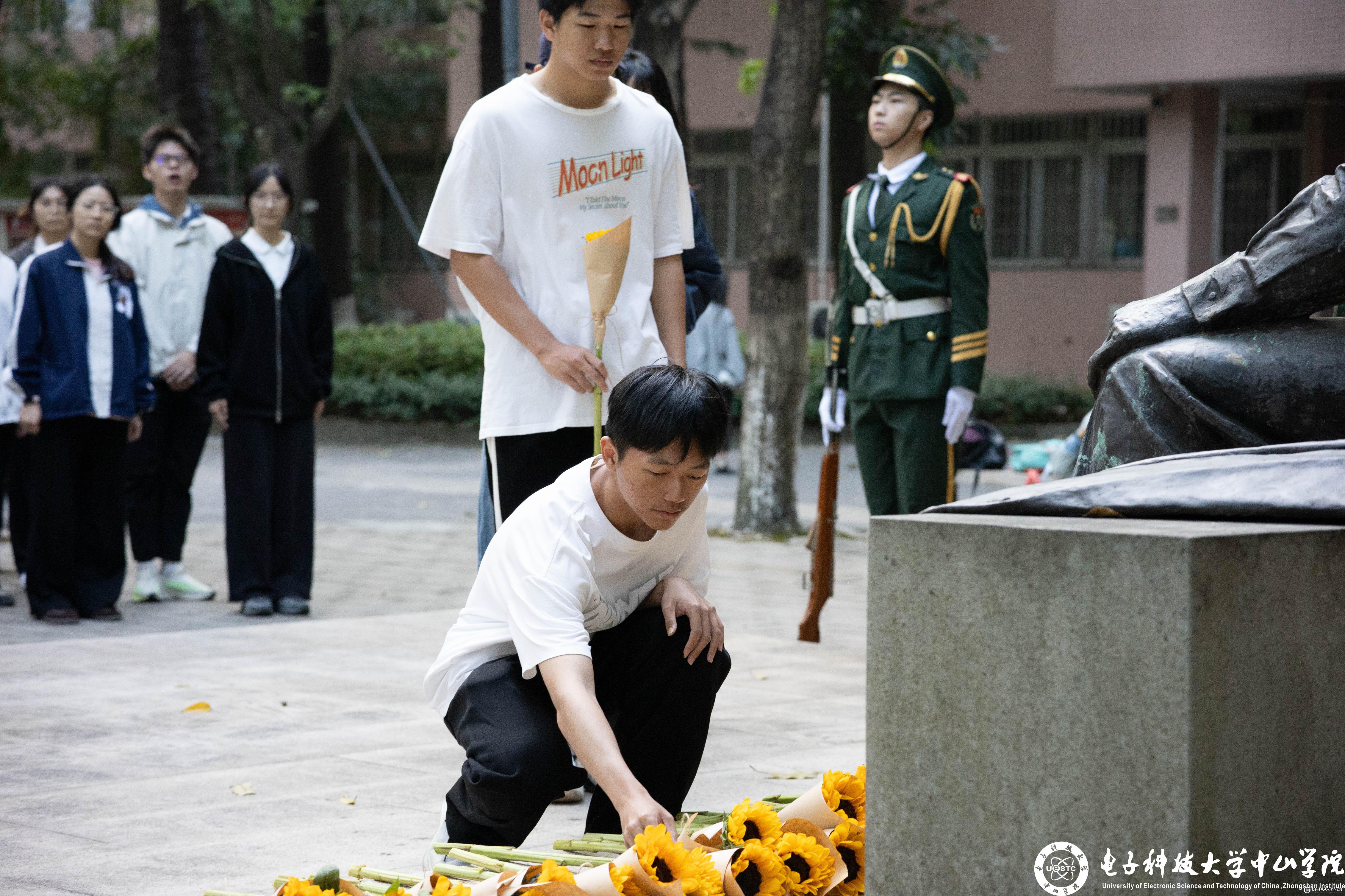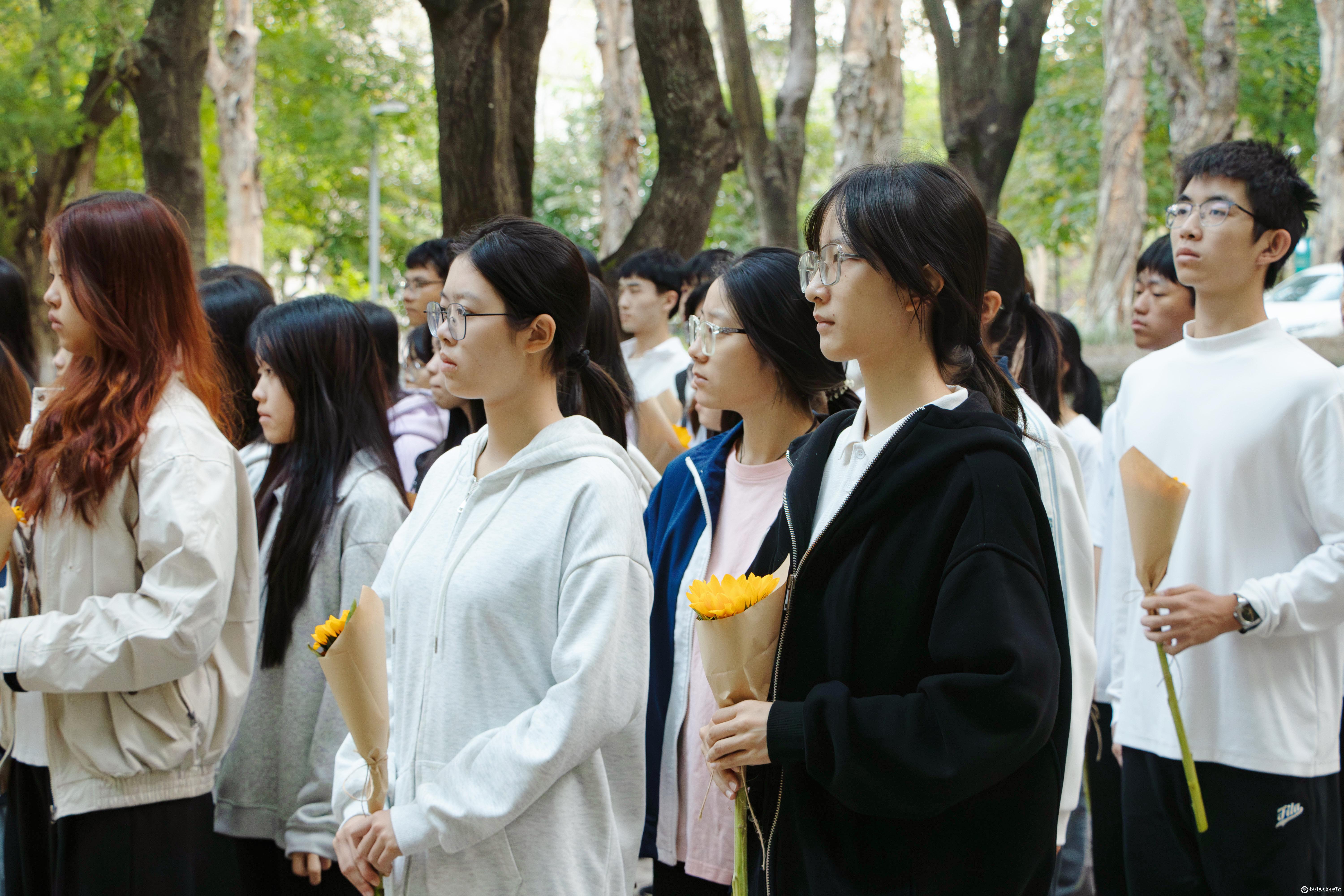 吴桂显先生像前,国旗护卫队整齐列队。在简短而深情的开场致词后,师生代表有序上前敬献鲜花,并向雕像鞠躬致敬。
