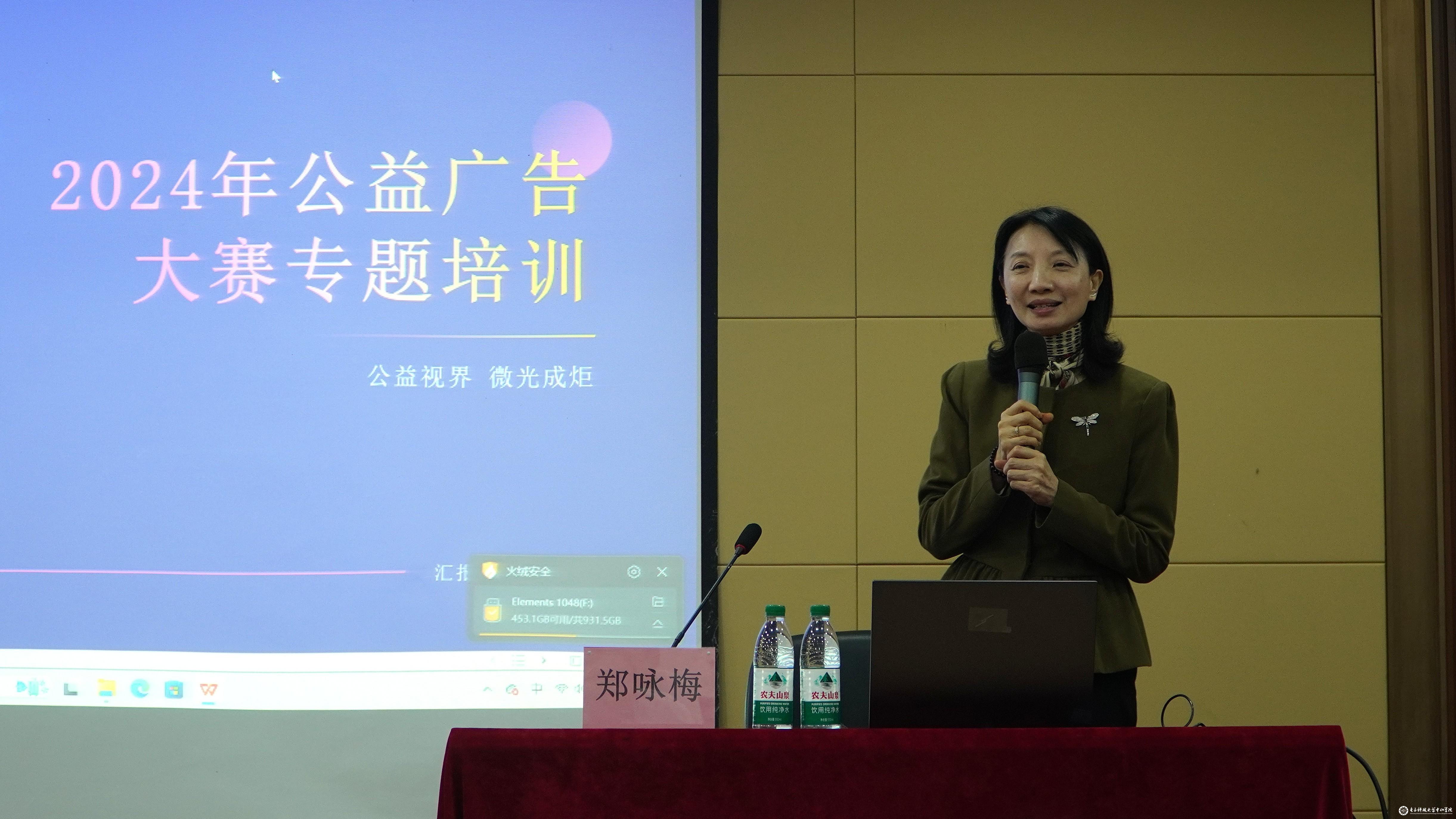 讲座内容丰富多彩,主要分为“主题选择”和“创意构思”两大板块。在“主题选择”部分,郑咏梅首先引用了国家广播电视总局发布的《2023年全国广播电视行业统计公报》数据,指出在新时代背景下,公益广告的播出时间显著增长,成为传播社会主义核心价值观的重要载体;深入探讨了如何构建“大公益”生态圈,详细列举了“公益+粤港澳大湾区建设”“公益+高质量发展”“公益+“百千万工程”建设”“公益+文化兴城建设”“公益+时代新风”以及“公益+防网络诈骗”等主题,并逐一阐述了如何创作这些公益广告。在“创意构思”部分,郑咏梅提出了15种创作手法,包括小题大做、大题小做、寓教于乐、幽默搞笑、社会实践、名人效应、巧用AI制作等。她通过举例和播放多个公益广告视频,生动地展示了这些创作手法的实际应用和效果,为学生们提供了丰富的创意灵感和实践指导。